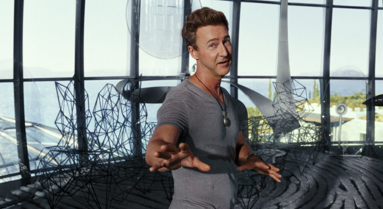 ‘살인 추리극’ ‘글래스 어니언’ 투어가 시작된다. 모든 게 유리로 된 거대 저택에 마주 앉은 블랑과 마일스. 마일스는 블랑을 초대하지 않았다고 말한다. 블랑은 어떻게 그리고 왜 이곳에 오게 되었을까? 하지만 마일스는 블랑을 공식적 손님으로 초대한다.