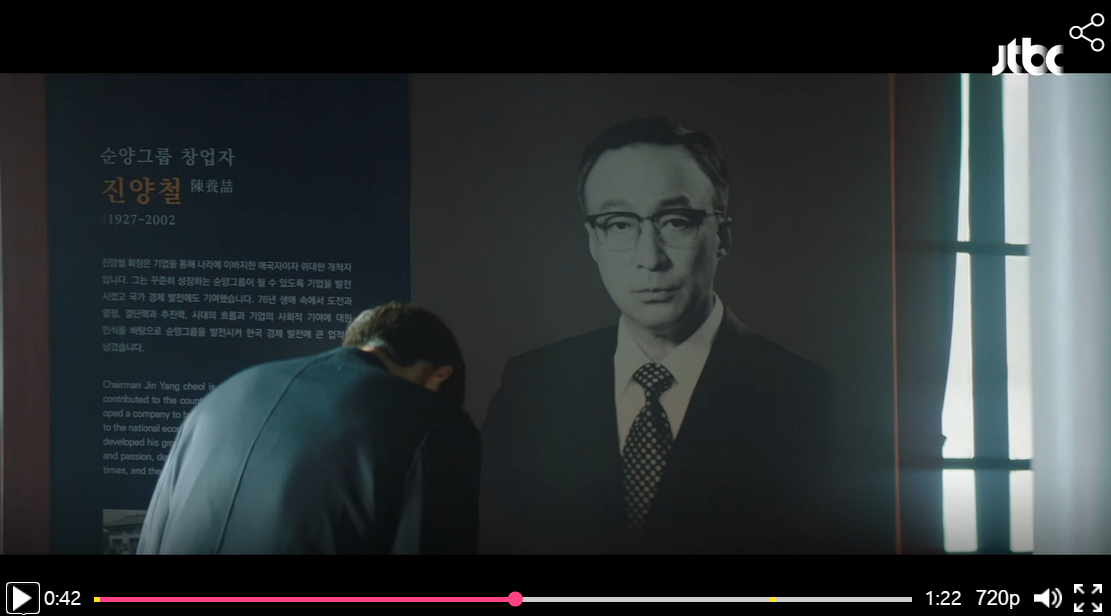 신문에는 순양 재벌 3세 진도준이 유산으로 받은 7000억원을 기부하기로 했다는 뉴스가 메인으로 나오고 도준은 재벌개혁의 아이콘으로 부상하게 된다. 순양물산의 차기회장으로 선출된 도준은 진회장을 찾아간다. 벽에 걸린 진회장을 모습을 본 도준은 말한다.